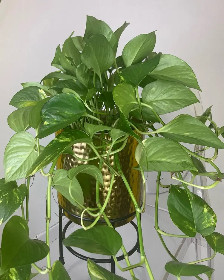 The golden pothos, also known as satin or silk pothos, is a beautiful and low-maintenance vine that's great for purifying indoor air. It filters out harmful toxins like toluene, formaldehyde, xylene, trichloroethylene, and benzene.