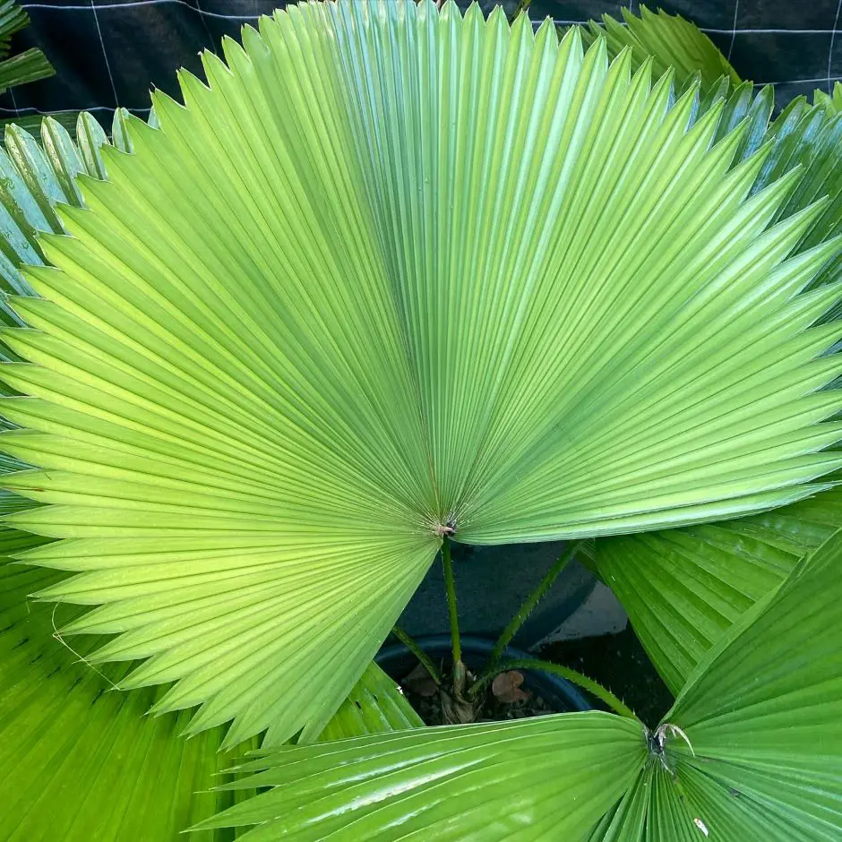 Licuala grandis, commonly known as Ruffled Fan Palm, is among the slow-growing but rewarding plants with big leaves. It is an elegant palm tree with distinctive, round, pleated leaves that resemble a fan.