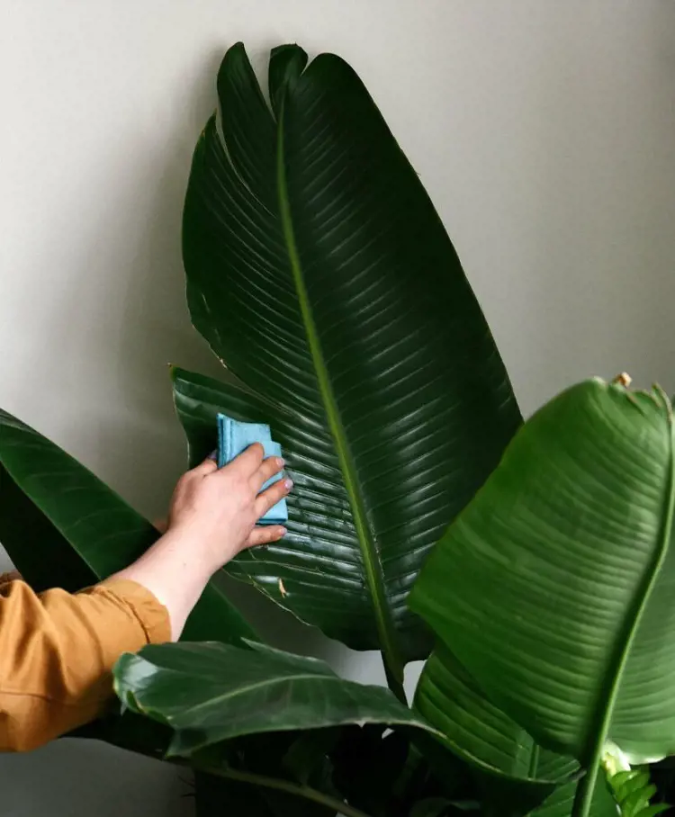 Maintaining optimal photosynthesis in your Bird of Paradise plant requires dusting the leaves. Dust accumulation on the big, glossy leaves can prevent the plant from absorbing light and exchanging gases.