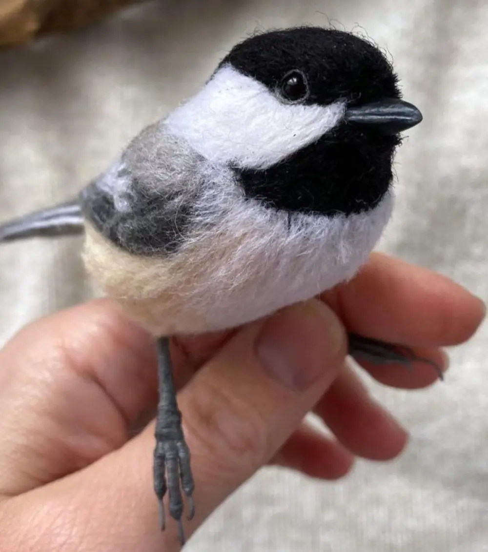A chickadee’s songs and calls are easily recognizable thanks to their simplicity. Their song has two clear notes that drop in pitch that sound like “fee-bee.”