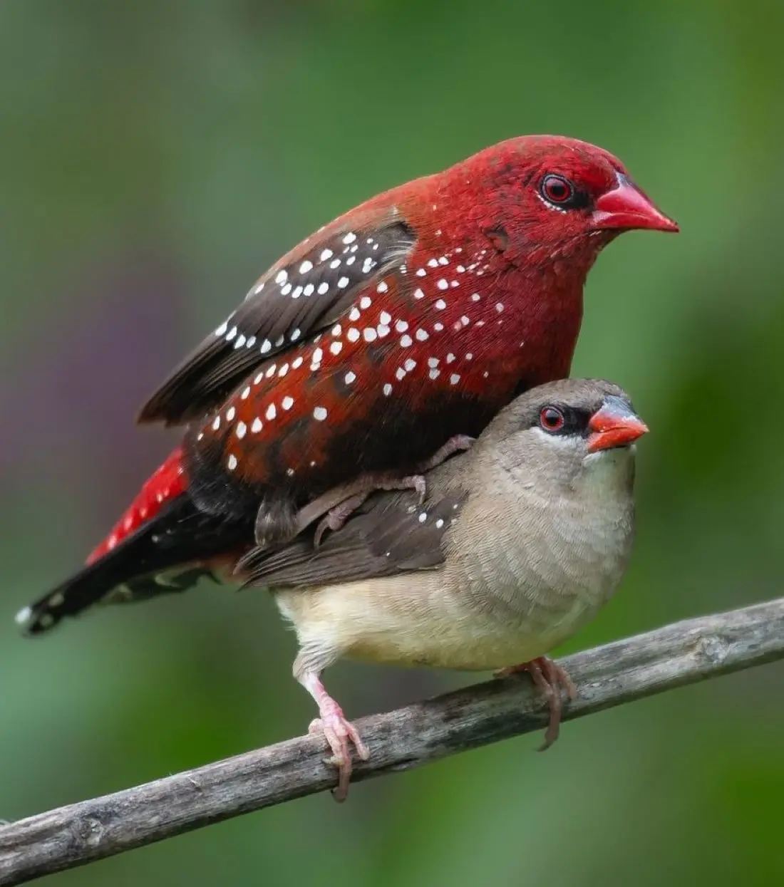 These birds sound like a mix of lasers, a series of musical notes, and a unique bubbling sound like liquid being poured. They make these mating calls as they hang upside down on a perch with their wings in full display.