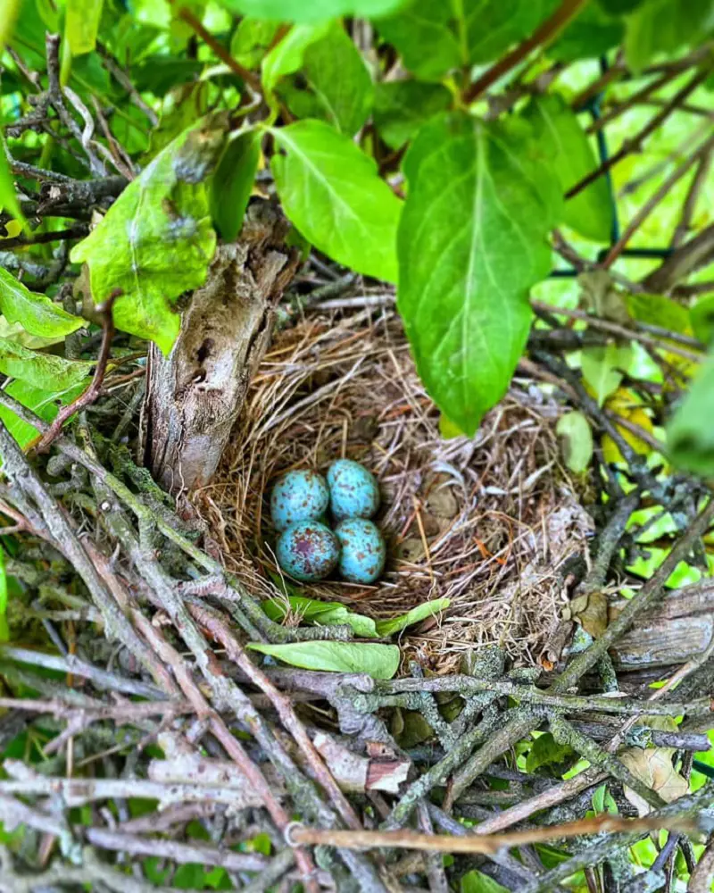 Both sexes work together to gather materials for building nests, including twigs, leaves, bark, and occasionally even man-made objects like twine or paper.