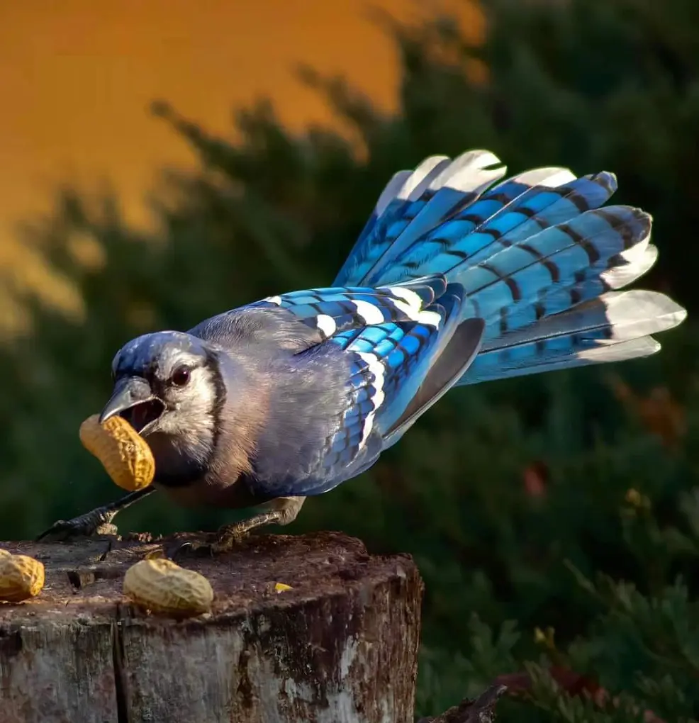 They frequently engage in loud, raucous feeding activities, chasing and calling one another as they fight over food sources. Because of their versatility and opportunistic behavior, blue jays can flourish in a variety of environments and climates.