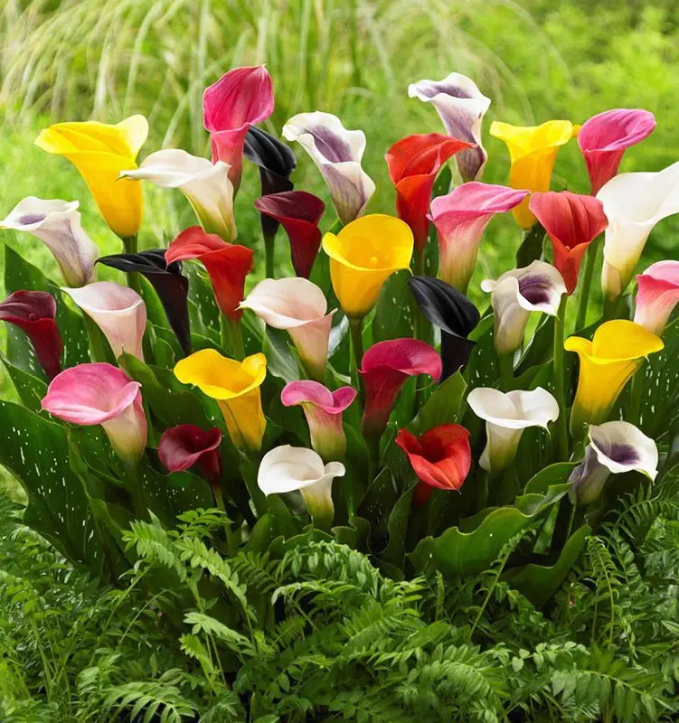 - Outdoor Calla Lilies (Zantedeschia elliottiana): These hardy tuberous varieties come in an array of vibrant colors like yellow, pink, purple, and even black. They flourish in warm climates and add drama to summer gardens.