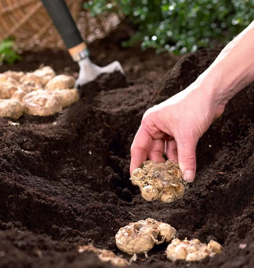 - Planting: After the last frost, plant tubers in well-draining, moist soil amended with compost or manure.