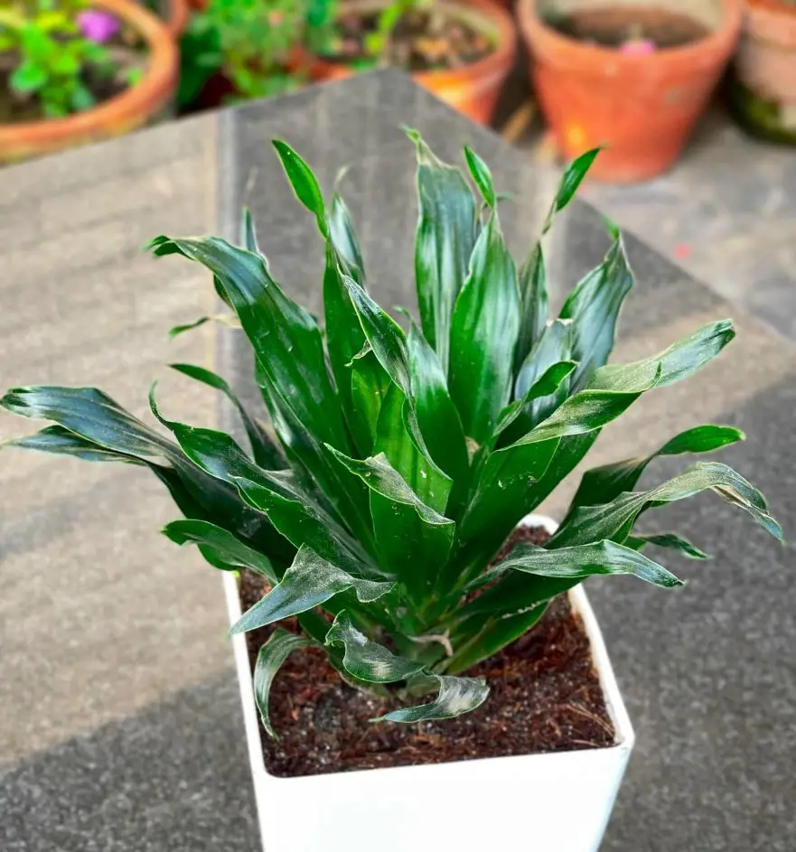 'Compacta' is a more compact cultivar with shorter and denser foliage compared to the standard corn plant. Its leaves are dark green, and it maintains a neat appearance, making it suitable for smaller spaces.
