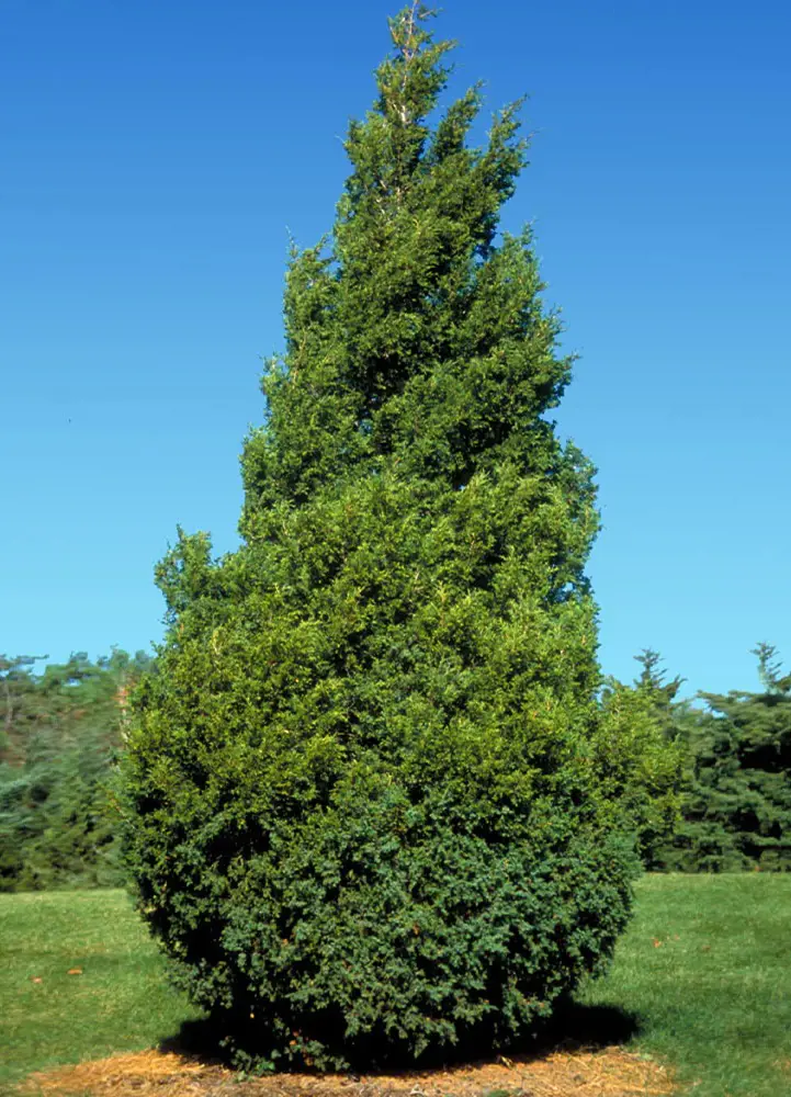 Despite its rapid growth, it takes around 15 to 25 years to reach full maturity. This evergreen tree thrives in a variety of climates, including hot summers and cold winters, and it prefers full sun exposure. Native to the United Kingdom, the Leyland Cypress features a dense, columnar shape with soft, feathery foliage that adds a touch of elegance to any landscape.