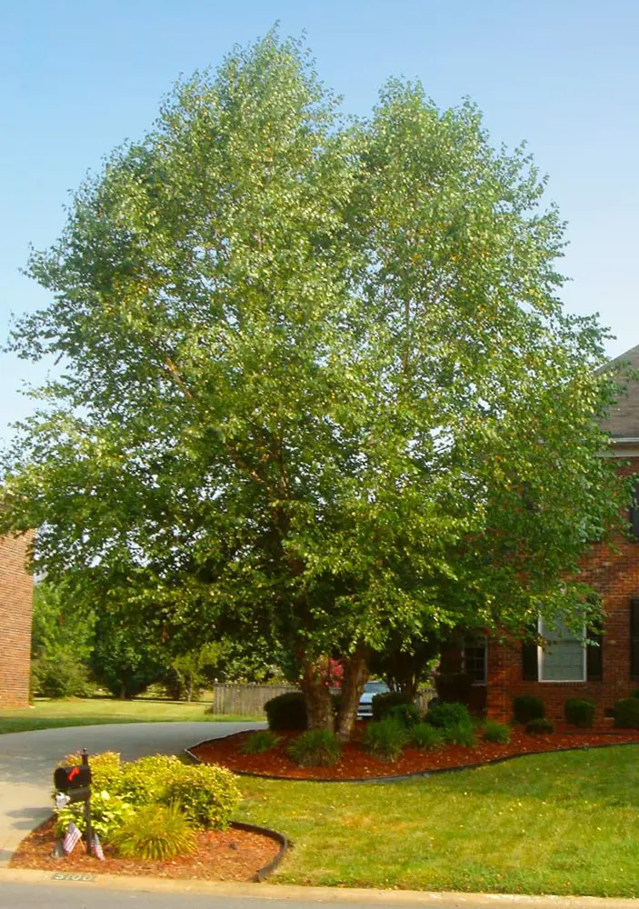 This birch tree typically reaches maturity at around 15 years of age. It has a distinctive appearance, with attractive peeling bark that exposes reddish-brown inner layers. The Heritage River Birch thrives in moist to wet soil conditions and is native to the eastern and central United States. It can withstand a wide range of temperatures, making it adaptable to various climates.
