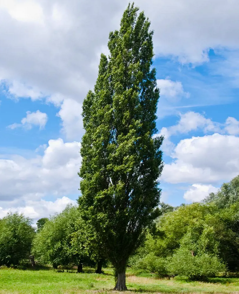 The Lombardy Poplar, scientifically known as Populus nigra 'Italica,' is a fast-growing decorative tree commonly found in North America. It boasts an impressive growth rate of around 4 to 6 feet per year, making it an excellent choice for those seeking quick privacy or shade.