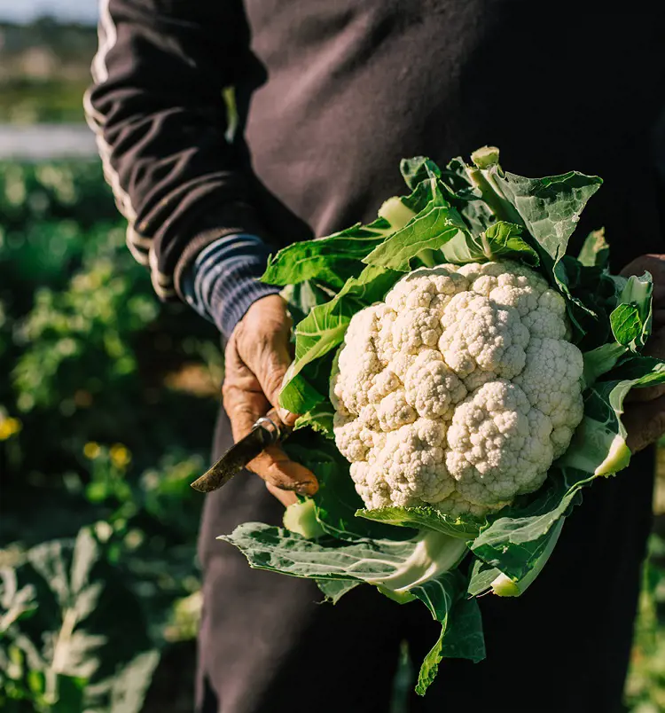 Patience pays off when it's time to harvest your cauliflower. Wait for the cauliflower heads to feel firm and tightly packed, which usually takes about 70-90 days from planting. When the heads are 6-8 inches in diameter, it's harvest time!