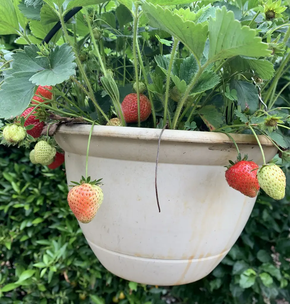 When in bloom, strawberries are visually appealing plants with a cascade growth habit that looks magical in hanging baskets.
