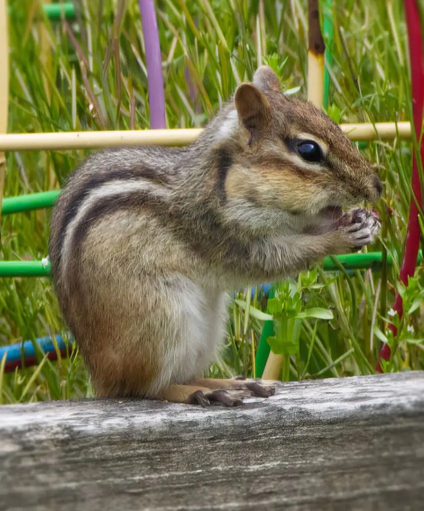 A chipmunk should not be allowed to play with such items as plastic or any other lighter material that a chipmunk would chew. The best way to make a fence to keep chipmunks out is therefore to use the right material.