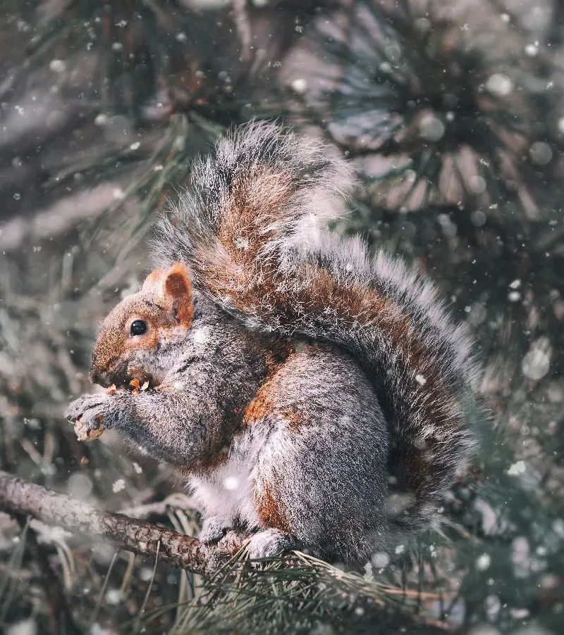 Squirrels undergo a period when they consume hard substances such as tree bark and twigs, especially during the cold seasons with limited other foods. The squirrels feed on the sap and the inner part of the tree by biting on the bark.
