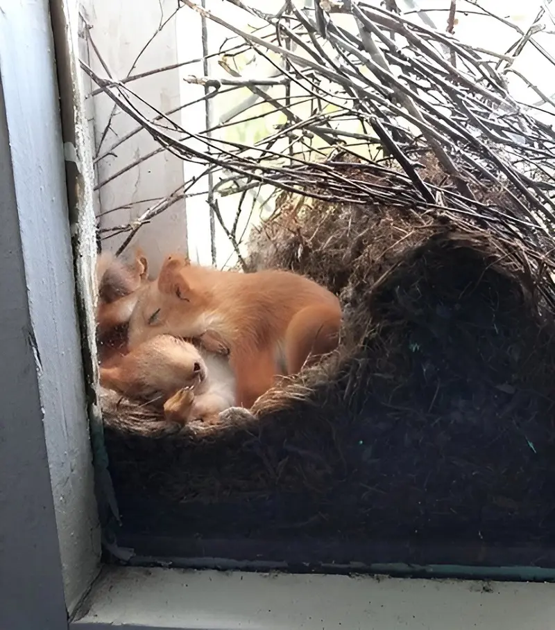 Different races of squirrels have unique nesting styles. Tree squirrels make big round structures for habitation called dreys made out of leaves and twigs, often situated atop branches.