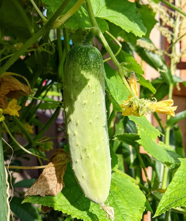 Older cucumbers also get bigger, and tougher, and have more and thicker seeds, so they don't taste as good. If you don't pick them up on time, the plant might stop making more, and it can get sick. Leaving them on the plant too long also makes it easier for bugs and sickness to attack.