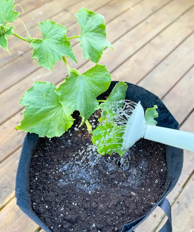 When watering, aim for the soil near the bottom of the plant to keep the leaves dry. Wet leaves can cause problems. So, think of it like giving your cucumbers a good drink at the roots to keep them happy, healthy, and growing well, especially when the weather is warm.