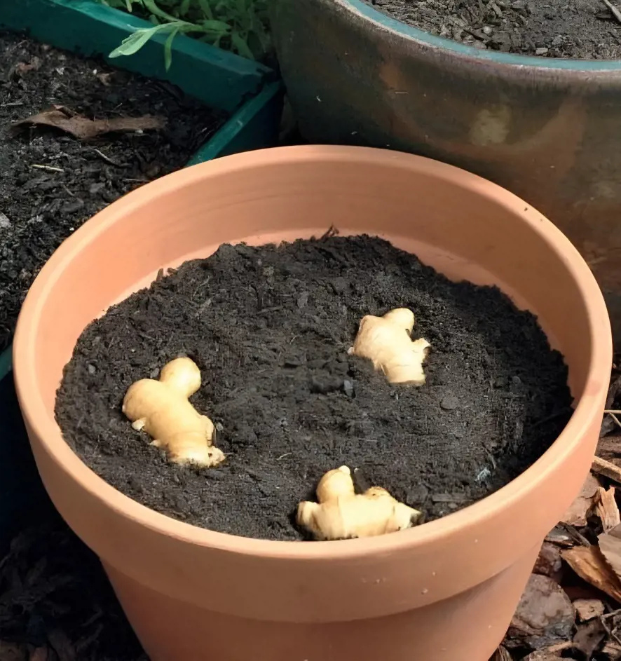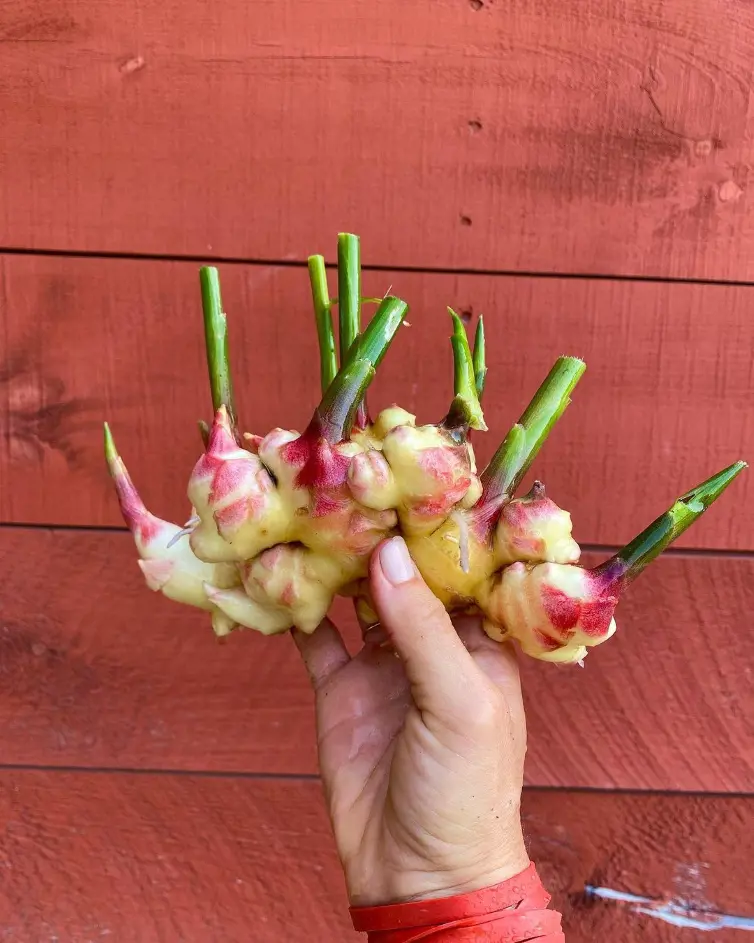 • After planting, it takes around 2–4 weeks for those "eyes" on the ginger root to sprout into tiny green shoots.