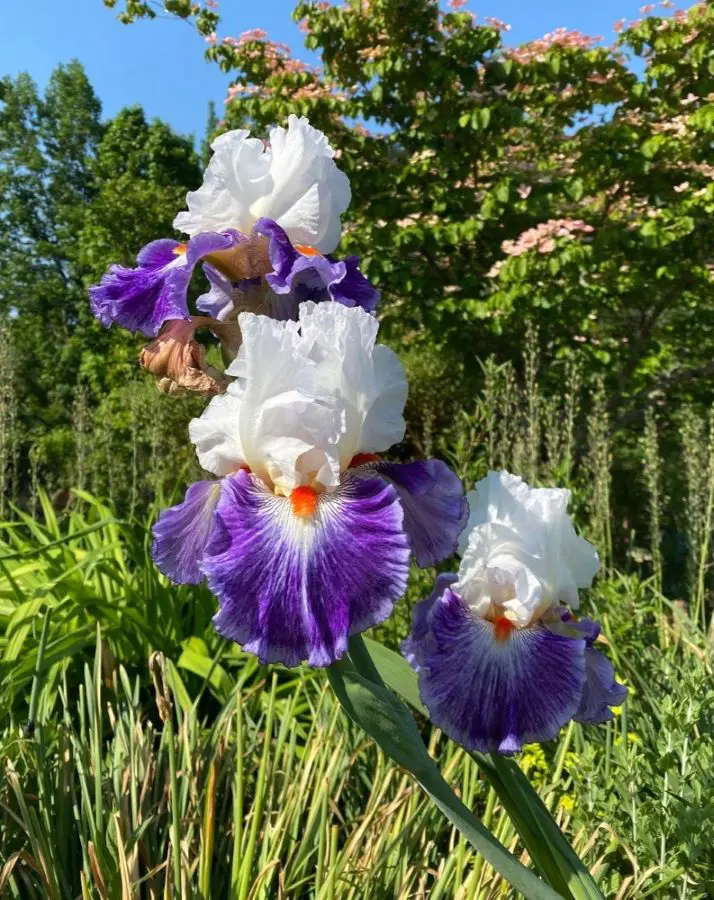 This is the most common type of iris, known for its showy and fragrant flowers with distinctive "beards" on the falls (lower petals). They come in various colors, sizes, and bloom times. Popular varieties are: