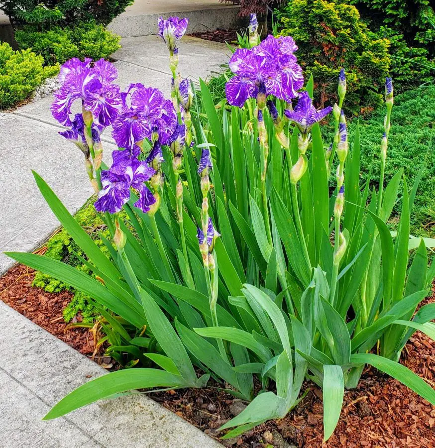 These elegant irises have flat, sword-shaped leaves and large flowers in shades of purple, blue, white, and pink. They prefer moist soil and partial shade. Here are some popular varieties: