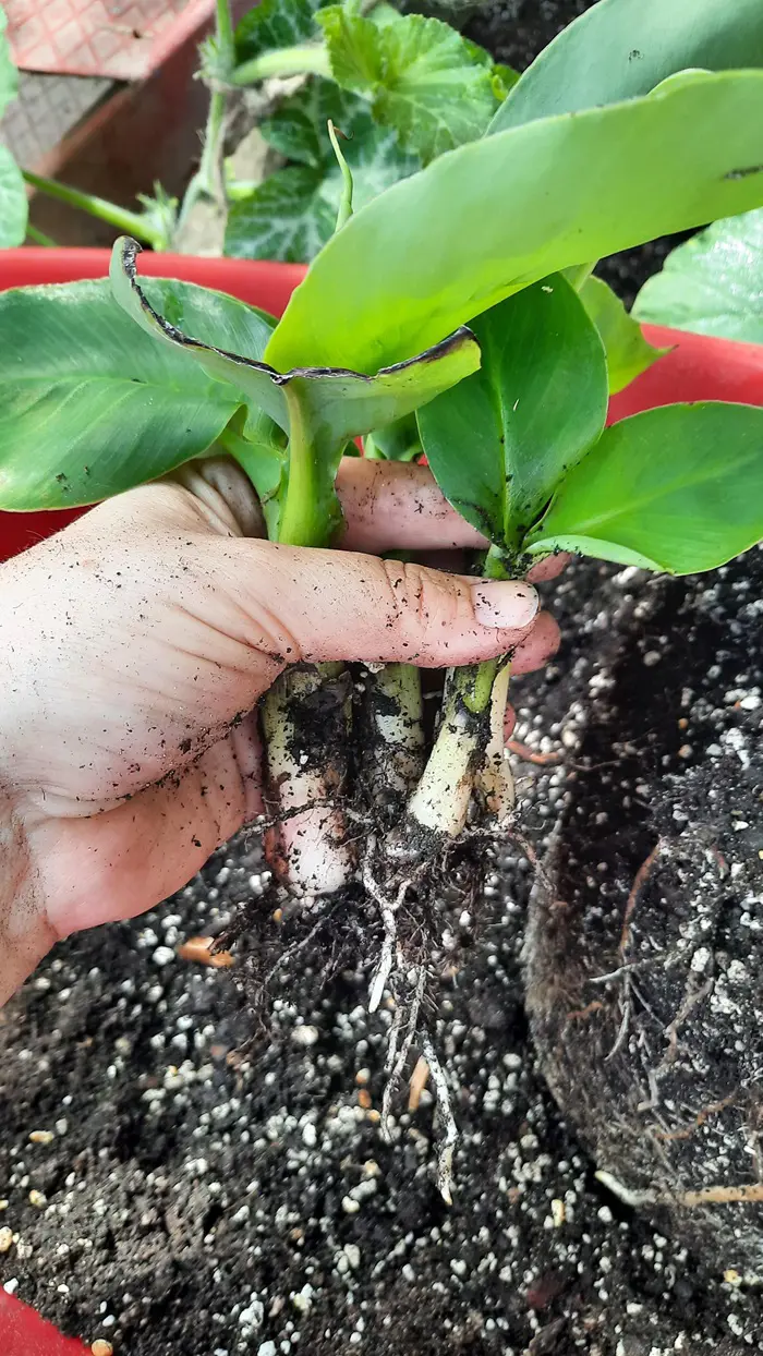 Once the roots have developed, it is time to take out the buried plant and transplant it into a new container.