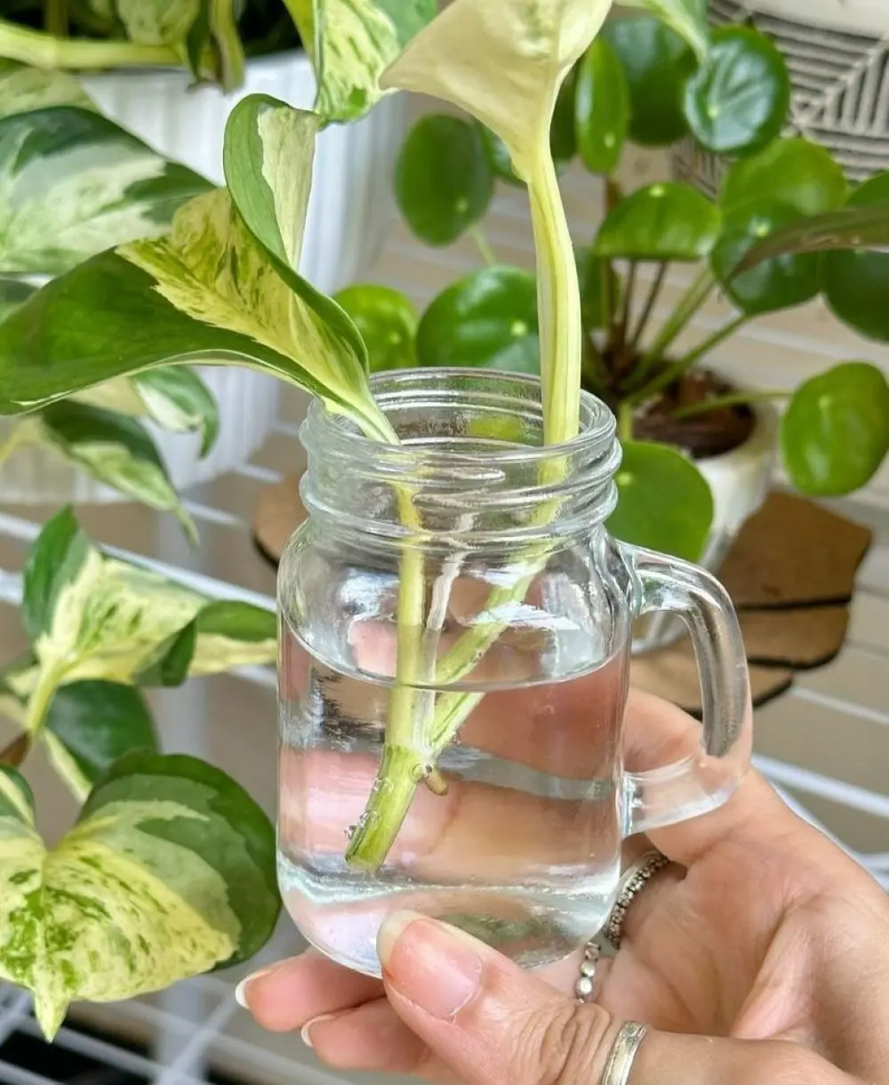 The best part about propagation with this method is the stem cuttings require no maintenance. You only have to refill the container with clean water every week or when the water starts to look cloudy. This reduces the risk of root rot.
