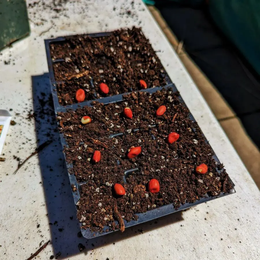 Thinning might be necessary for some seeds sown densely. Once seedlings have a few sets of true leaves, gently remove any weak or crowded ones to allow stronger plants more space to grow.