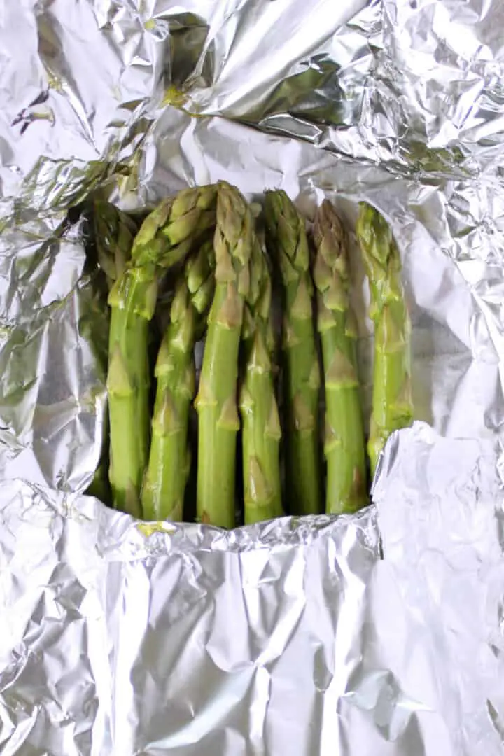 To safeguard your asparagus and maintain its freshness in the refrigerator, employ the aluminum foil wrap method. Begin by dampening a sheet of aluminum foil. Place the asparagus bunch in the center of the foil and tightly wrap it, ensuring a secure seal.