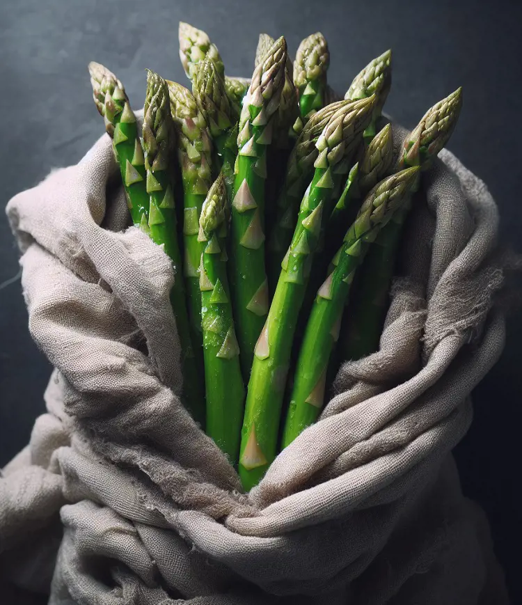 For optimal storage of asparagus, employ the damp cloth wrap method by encasing the bunch in a moistened cloth or paper towel before placing it in the refrigerator. This technique serves to regulate moisture levels, creating a protective barrier that shields the delicate stalks from drying out.