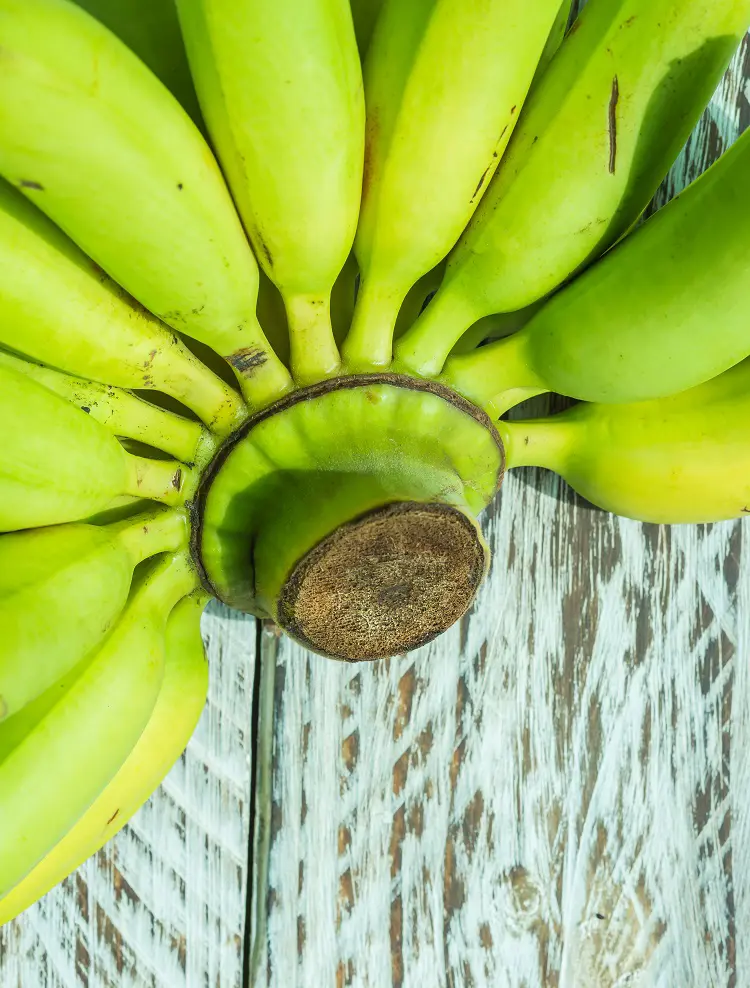 If you have purchased green and unripe bananas, then it is important that you do not refrigerate them. Instead, place them at room temperature as the bananas will be made to ripen via heat while the low temperatures of the refrigerator will also slow this ripening process.