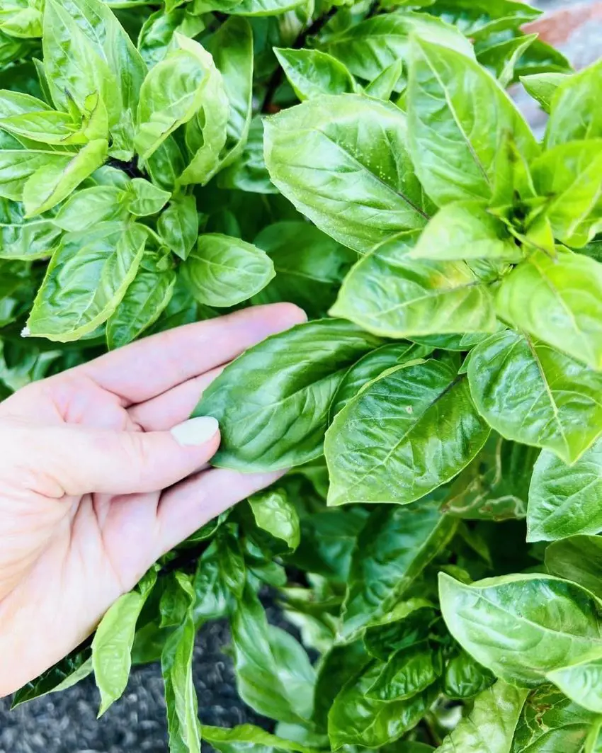 Color: Look for vibrant green glossy leaves and avoid ones with bruises. Bruised Basil leaves are purple, brown, or black. Also, ensure they are bruised leaves and not basil varieties with purple or variegated leaves.