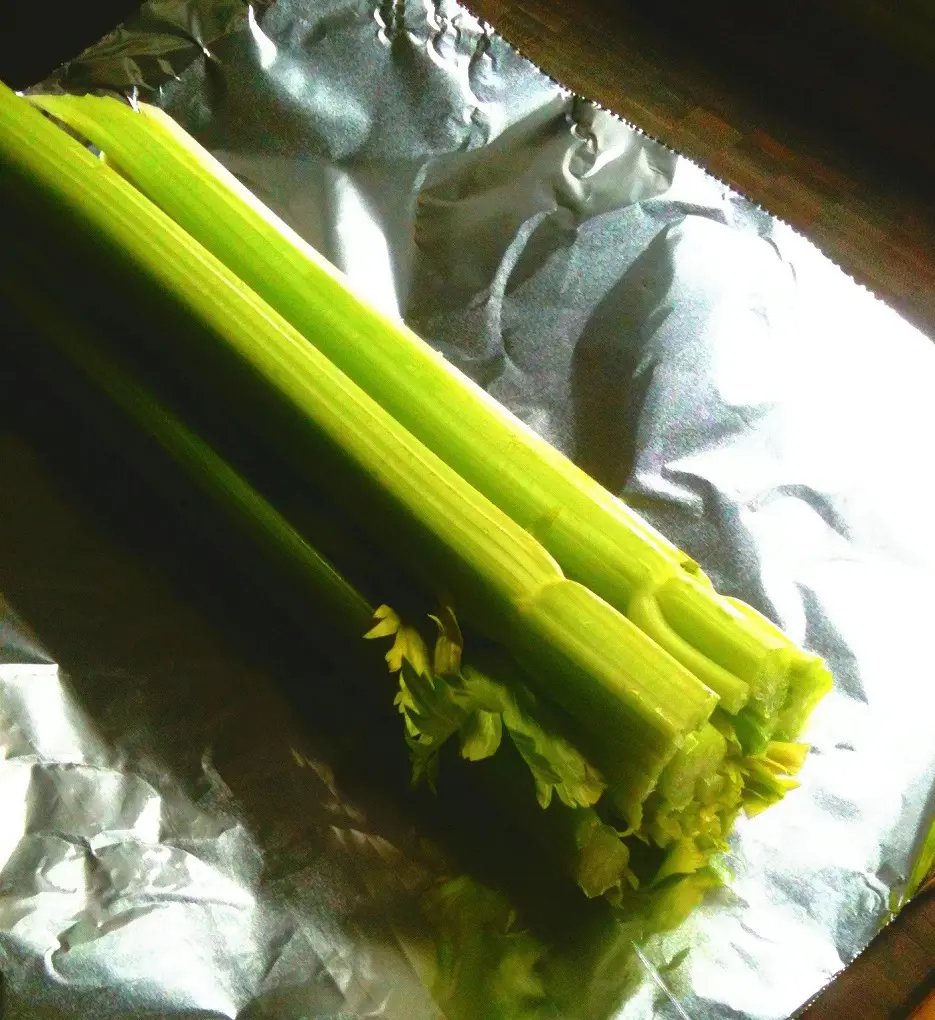 Tightly wrapping celery in foil creates a microclimate, a tiny ecosystem that holds onto the natural moisture in the stalks. The characteristic crisp texture and fresh flavor of celery are largely dependent on this moisture that is preserved.