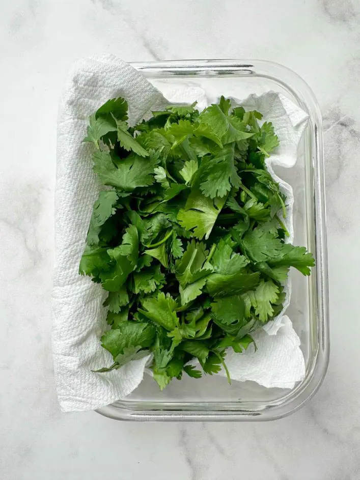 • Paper Towel Wrap: To remove excess moisture, pat the cilantro and with a damp paper towel, wrap it. Then, store in a refrigerator. Make sure to change the paper towels regularly in a few days.