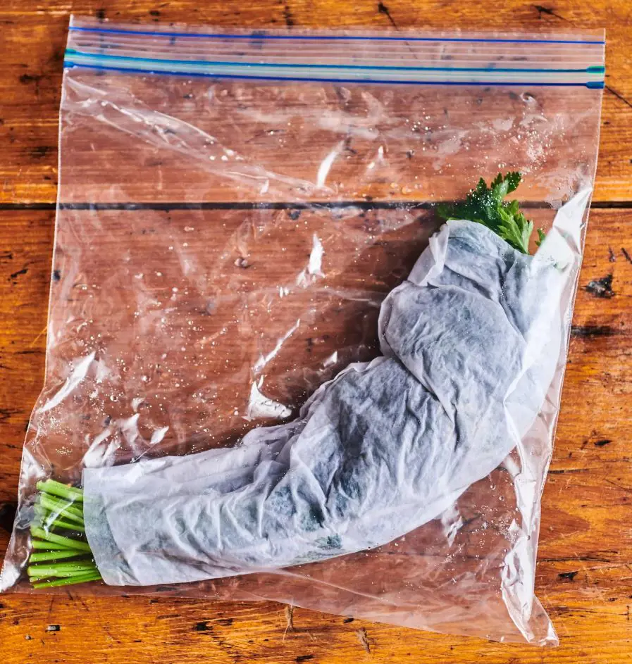 Cover the leaves loosely with a plastic bag, securing it with a rubber band or twist tie. This will help trap moisture and prevent the leaves from drying out.