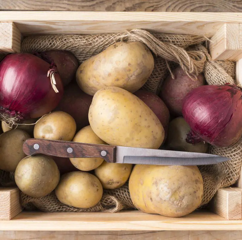 On the other hand, potatoes contain a high amount of moisture, which can lead onions to absorb this moisture. As a result, bulbs may turn mushy and brown, causing them to spoil. So, preserving them a few meters apart in a basket, box, or drawer would be fine.