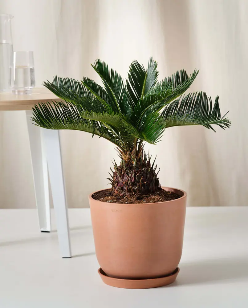 Despite its name, the Sago Palm is not a true palm but a cycad. However, its palm-like appearance makes it a popular choice for indoor greenery. The Sago Palm has a rugged, trunk-like stem and dark green, feathery fronds.