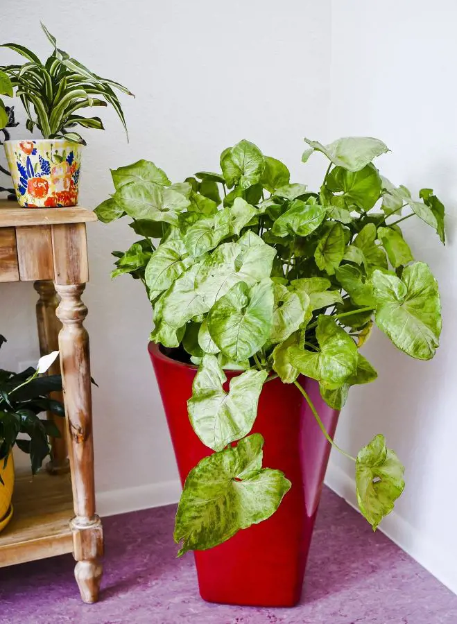 The Arrowhead Plant is characterized by its arrow-shaped leaves that start small and heart-shaped when young, then gradually develop into a distinct arrowhead shape as they mature. It belongs to the Araceae family and is native to the tropical regions of Mexico and Central America.