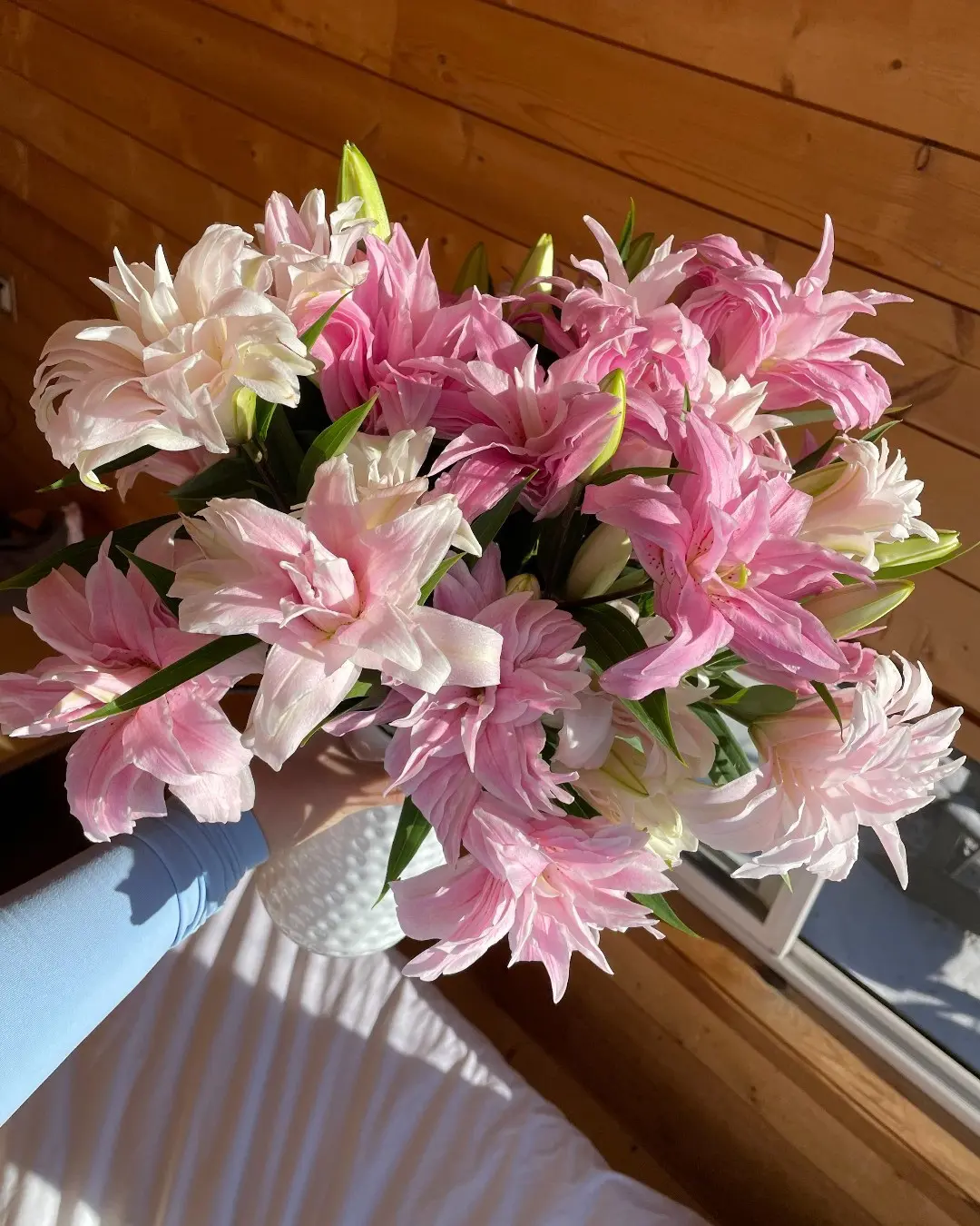 These lilies symbolize love, admiration, and compassion. Pink flowers are great for showcasing your love for your partner. It is highly suitable for romantic moments and displaying heartfelt emotions.