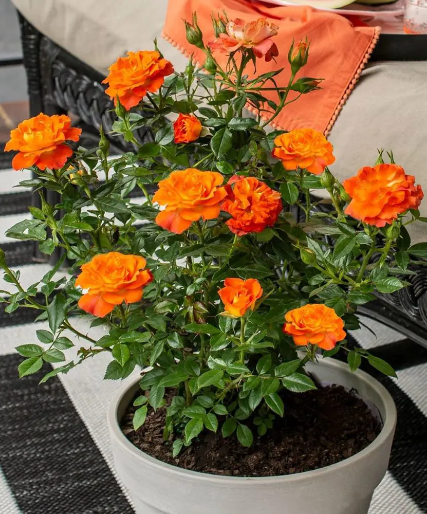 These miniature roses are compact and well-suited for growing in containers on patios, balconies, or small gardens. They typically have smaller blooms and are bred for their ornamental value.