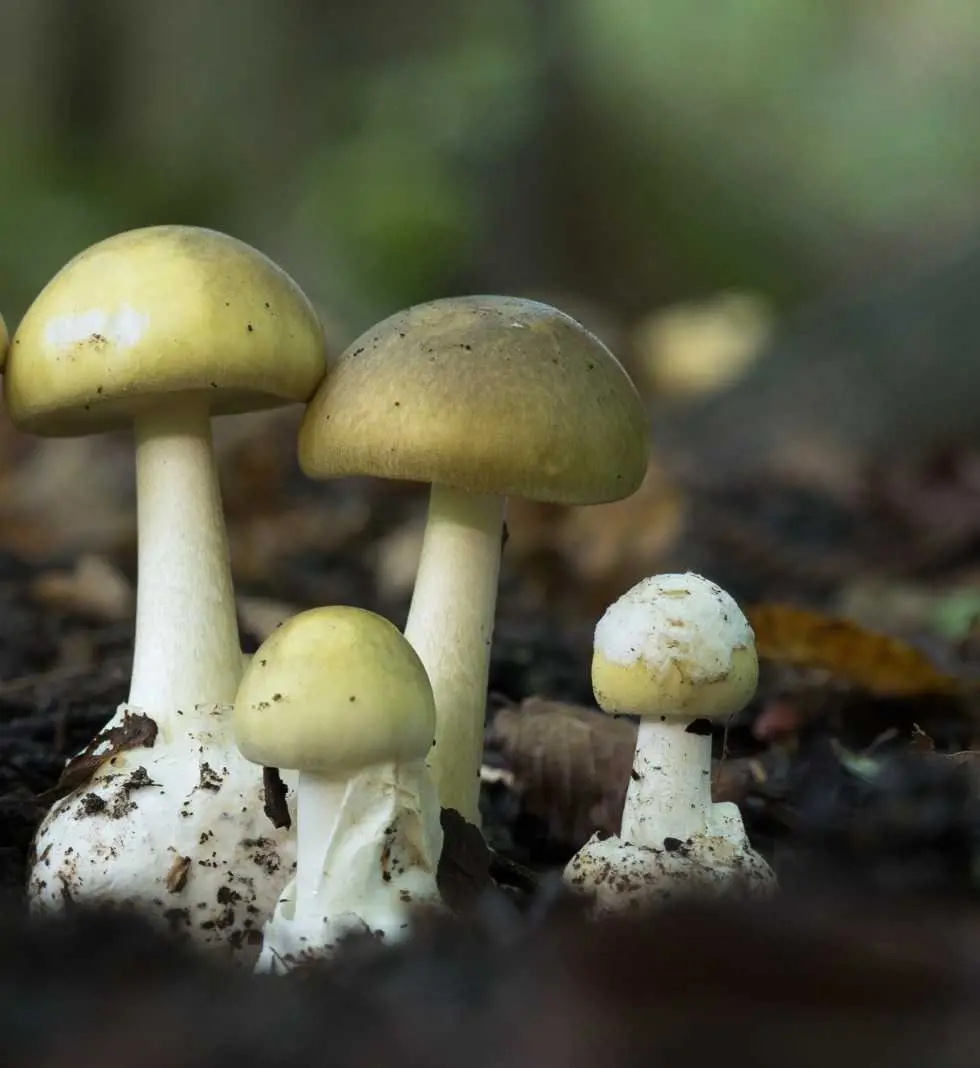 One way to identify it is by its pale yellow color, with slightly spaced gills that do not touch the stem. It also has a limited veil attached. Consuming this mushroom can cause liver failure. These deadly mushrooms mostly reside near oak trees.