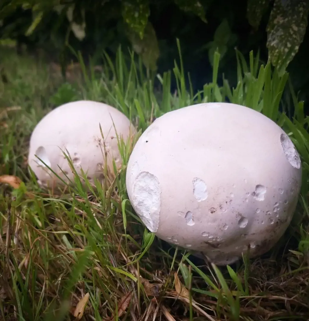 Giant puffballs are huge, white, rounded, consumable mushrooms. They do not contain a particular cap or stem and grow as a large, white ball. They can be found in fields, meadows, parks, and grassy areas between August and October.
