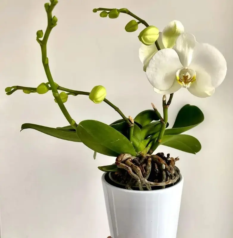 Orchids often have aerial roots that extend outside of the potting medium. These roots are crucial for nutrient uptake and anchoring the plant.