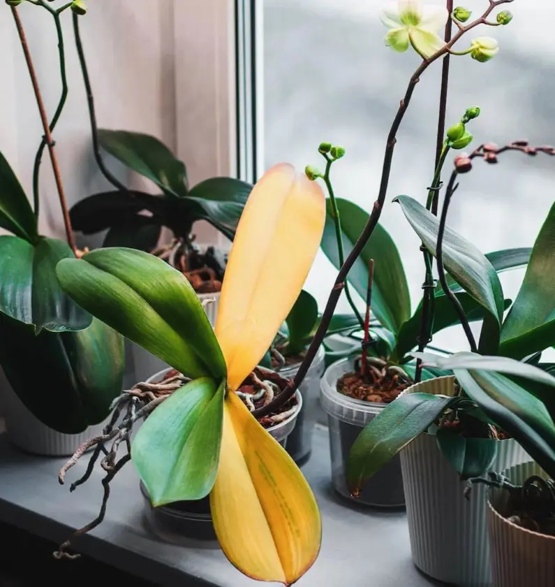 If orchids don't receive enough sunlight, they can't produce sufficient chlorophyll. This leads to a decrease in the green color of their leaves and eventual yellowing.