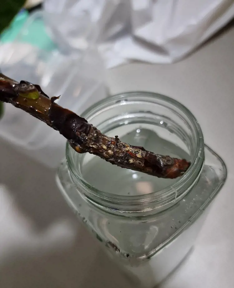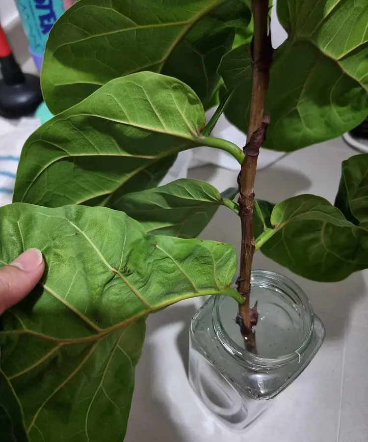 This might seem like a small change, but it's important! Removing those lower leaves helps the cutting use its energy wisely. It reduces the chance of losing too much water and makes it focus on growing roots from the bottom.