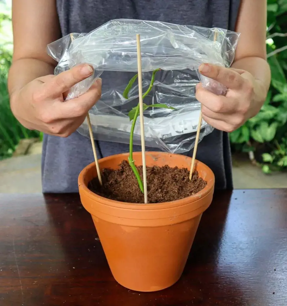 Also, the cover traps heat released by the sun or bottom heat source, creating a warm microclimate that encourages root development. Overall, Cover the Pot acts as a controlled environment, optimizing the conditions for root formation and boosting the success rate of rose propagation.