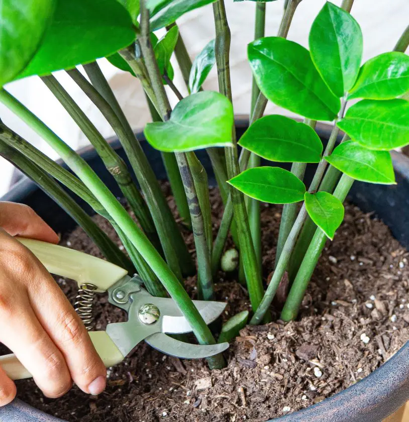 Select a healthy stem from the base of your ZZ plant that is at least 3 to 4 inches long and has two or three leaves. Use your pruning shears to make a clean cut at the base of the stem, being careful to avoid crushing or tearing it.