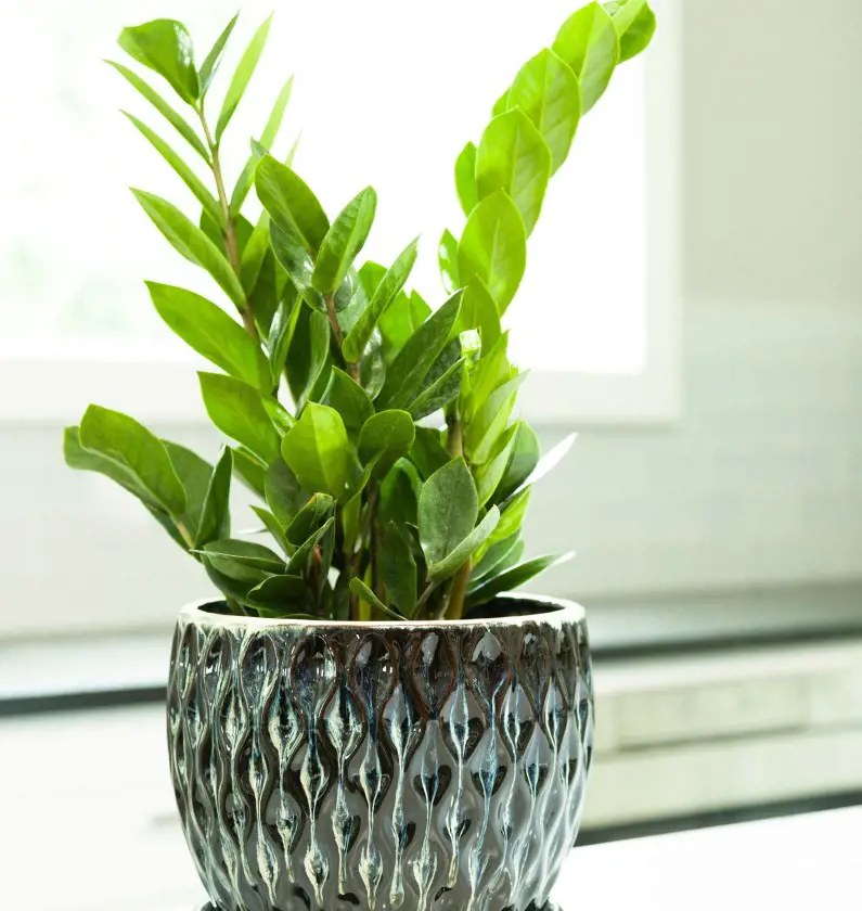 The ZZ plant, scientifically known as Zamioculcas Zamiifolia, is a tropical herbaceous perennial plant native to eastern Africa. It is recognized for its glossy, dark green, and attractive foliage, making it a popular choice as a houseplant for its resilience and easy care.