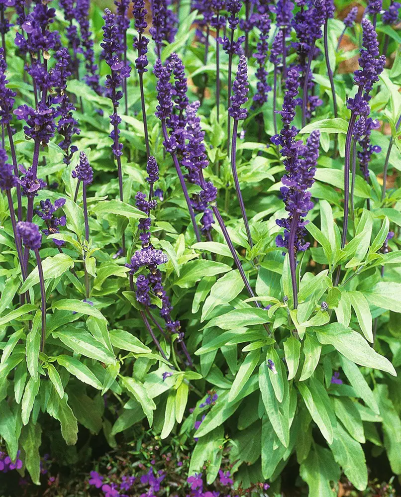 Salvia, also known as Sage, is a diverse genus of plants known for their aromatic foliage and tubular flowers in shades of blue, purple, red, and white. These plants thrive in full sun and well-drained soil, making them ideal for a variety of garden settings.