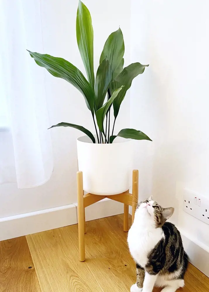 With a sturdy and upright appearance, it adds a touch of greenery to indoor spaces. Keeping cats safe, the Cast Iron Plant requires minimal care, thrives in low light conditions, and tolerates irregular watering, making it a hassle-free addition to cat-friendly homes.