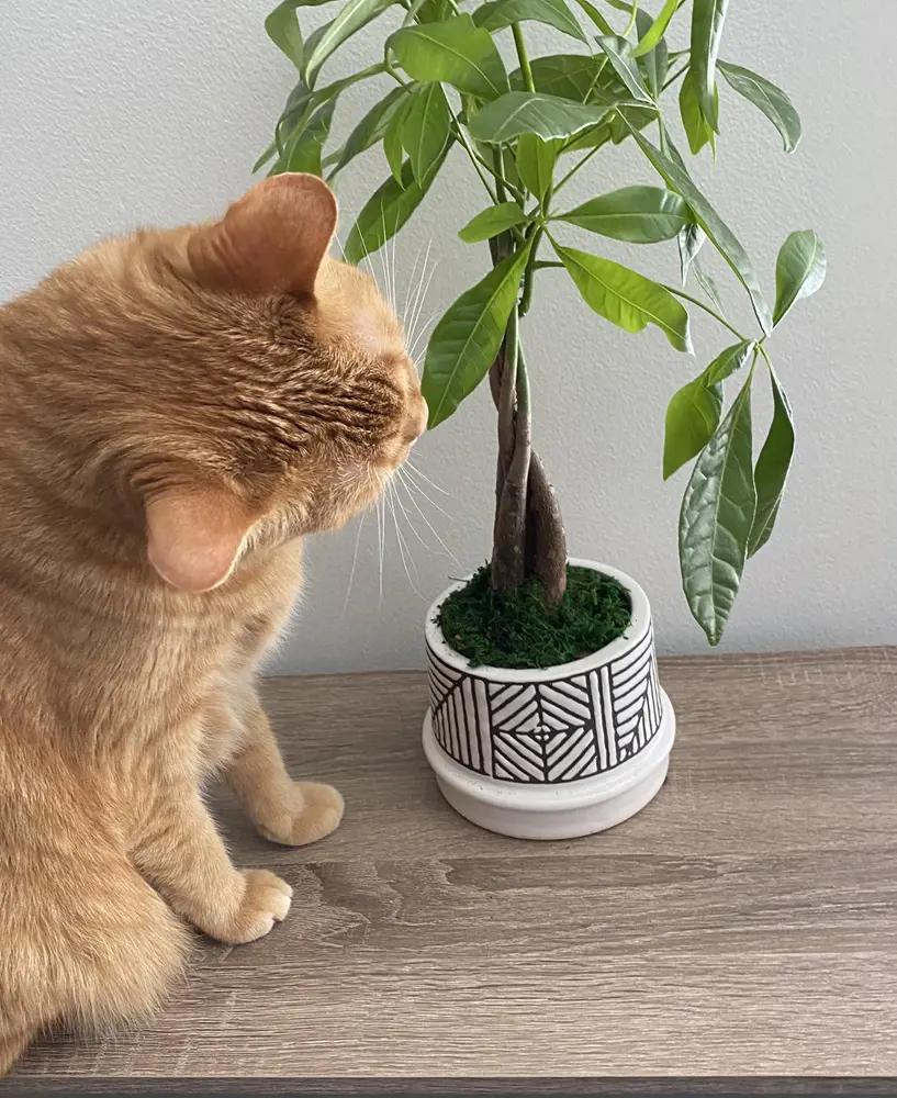 Money Tree, scientifically known as Pachira aquatica, is considered a safe plant for cats. This popular houseplant, known for its braided trunk and distinct green foliage, poses minimal risk to feline friends. While it's always advisable to monitor pets around plants, the Money Tree is non-toxic to cats.