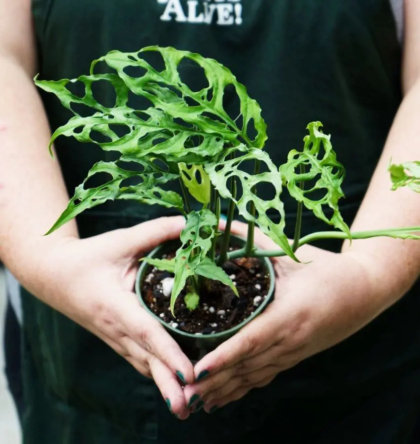 Monstera obliqua is known for having the largest and most numerous fenestrations of any Monstera species. Its leaves are delicate and perforated, with numerous irregularly shaped holes. This species is highly sought after by collectors but can be challenging to cultivate due to its specific care requirements.